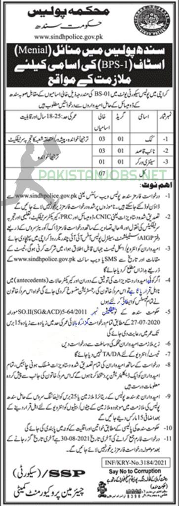 Sindh Police are looking for a cook (BPS-01), Naib Qasid (BPS-01) and medical personnel (BPS-01) for the Karachi Police Security Unit. Well-educated candidates can apply for these positions. The quota for women and minorities is respected. Candidates wishing to apply must follow the application process outlined below.