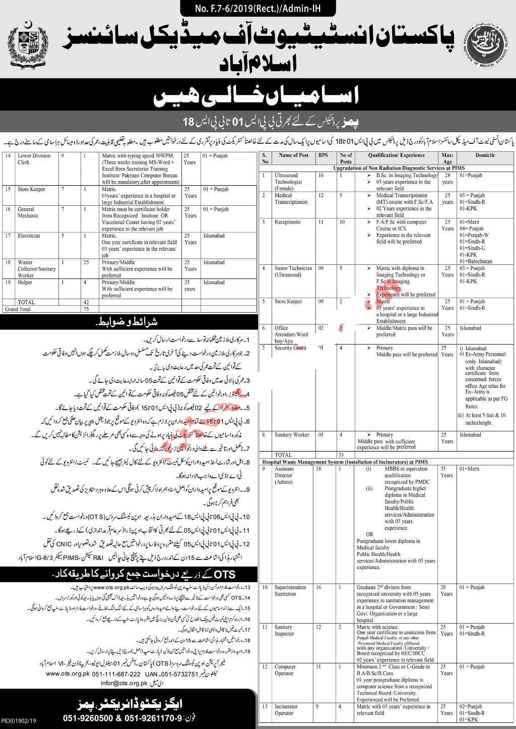 PIMS Jobs October 2019 - Jobs In Pakistan Institute Of Medical Scienes Islamabad